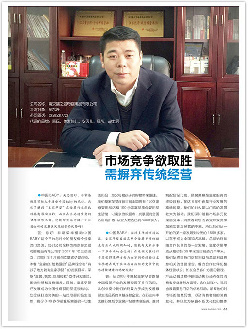在《中國BABY》2月賀歲刊報導的《绿巨人黄色视频在线观看競爭,勝在變革——皇家孕嬰,市場競爭欲取勝,需掘棄傳統經營》一文中,皇家孕嬰總經理吳東升分享了绿巨人黄色视频在线观看的經營理念、發展曆程與遠大願景。